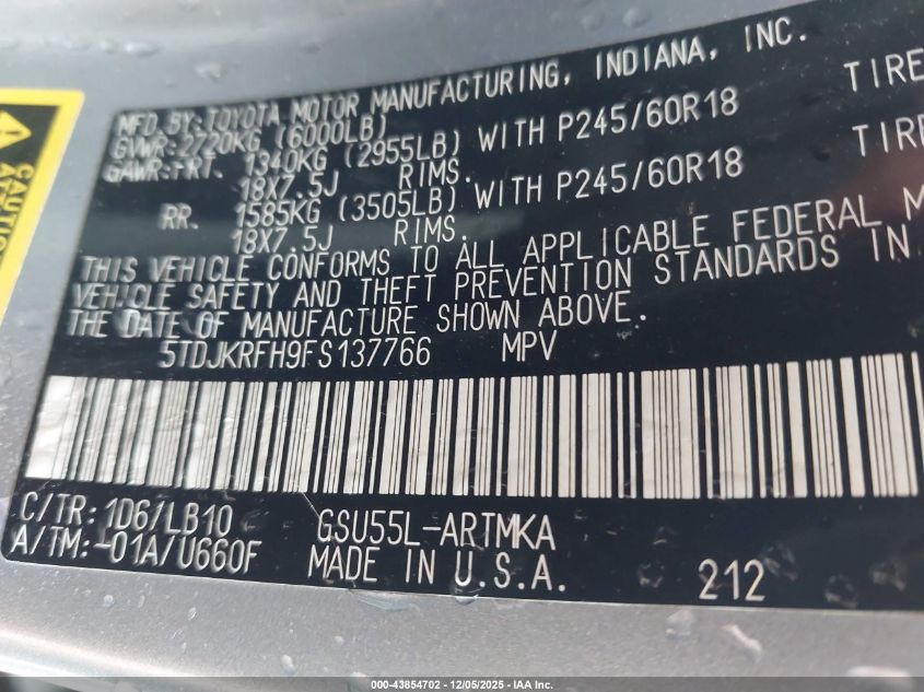 Цвет СеребряныйЦилиндры 6Привод Полный приводVIN 5TDJKRFH9FS137766Состояние СтационарноПовреждения Передняя или задняя AutoRIA