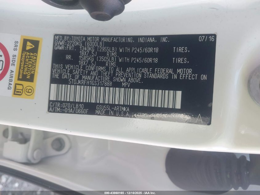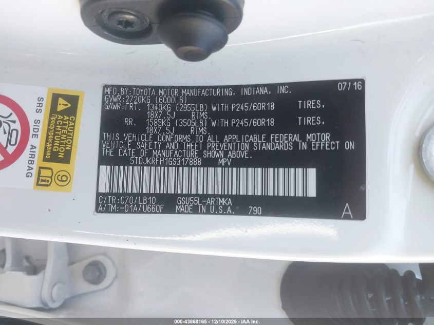 2016 TOYOTA HIGHLANDER 2016 року Бензин, 3.5, Полный привод, vin - 5TDJKRFH1GS317888 из США