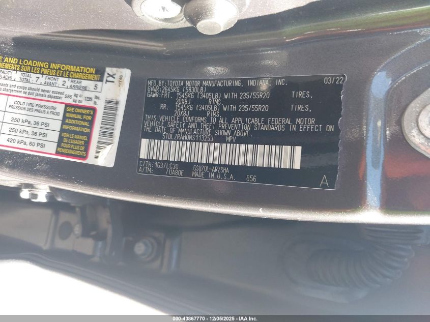 2022 TOYOTA HIGHLANDER 2022 року Бензин, 3.5, Передний привод, vin - 5TDLZRAH0NS113253 из США