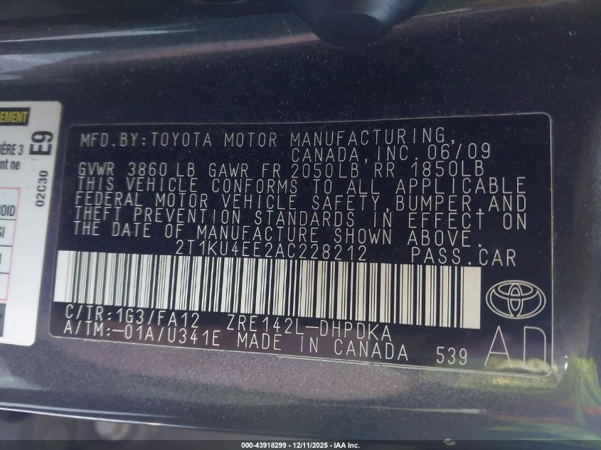 2010 TOYOTA MATRIX 2010 року Бензин, 1.8, Передний привод, vin - 2T1KU4EE2AC228212 из США
