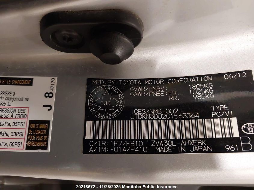 Цвет СеребряныйЦилиндры 4Привод Передний приводVIN JTDKN3DU2C1563364Состояние СтационарноПовреждения ВандализмДата аукциона 2025-12-10 AutoRIA