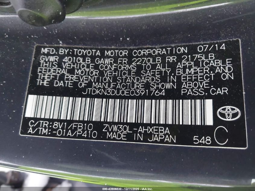 2015 TOYOTA PRIUS 2015 року Гибрид, 1.8, Передний привод, vin - JTDKN3DUOE0391764 из США