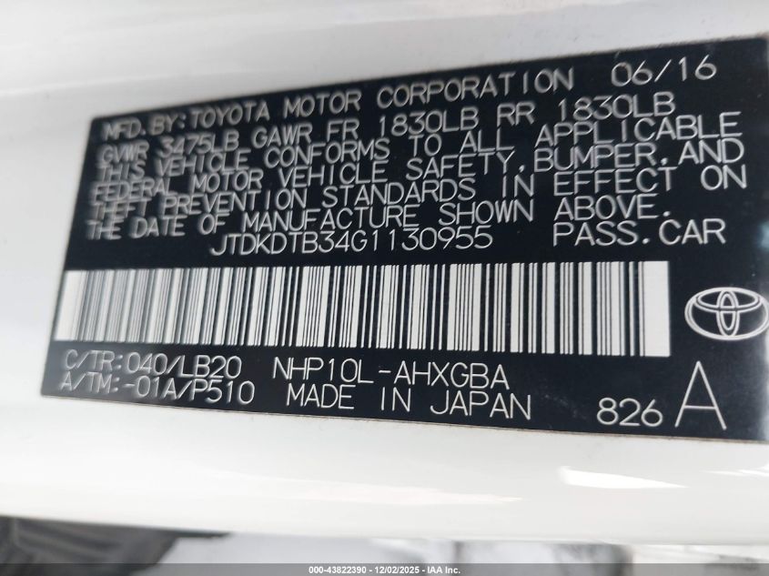 2016 TOYOTA PRIUS C 2016 року Гибрид, 1.5, Передний привод, vin - JTDKDTB34G1130955 из США