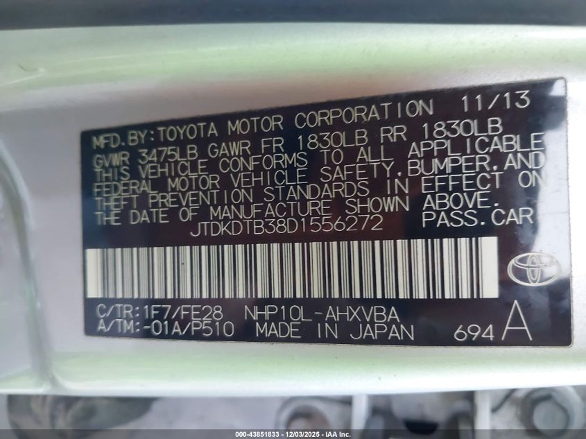 Цвет СеребряныйЦилиндры 4Привод Передний приводVIN JTDKDTB38D1556272Состояние Заводится и едет (проверено)Повреждения Передняя и задняяДата аукциона 2025-12-10 AutoRIA