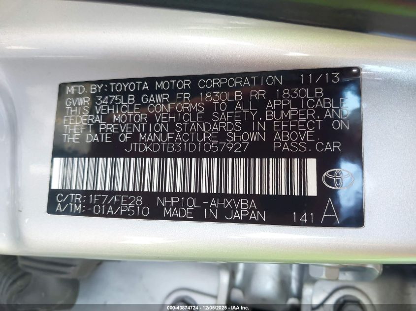 2013 TOYOTA PRIUS C 2013 року Гибрид, 1.5, Передний привод, vin - JTDKDTB31D1057927 из США