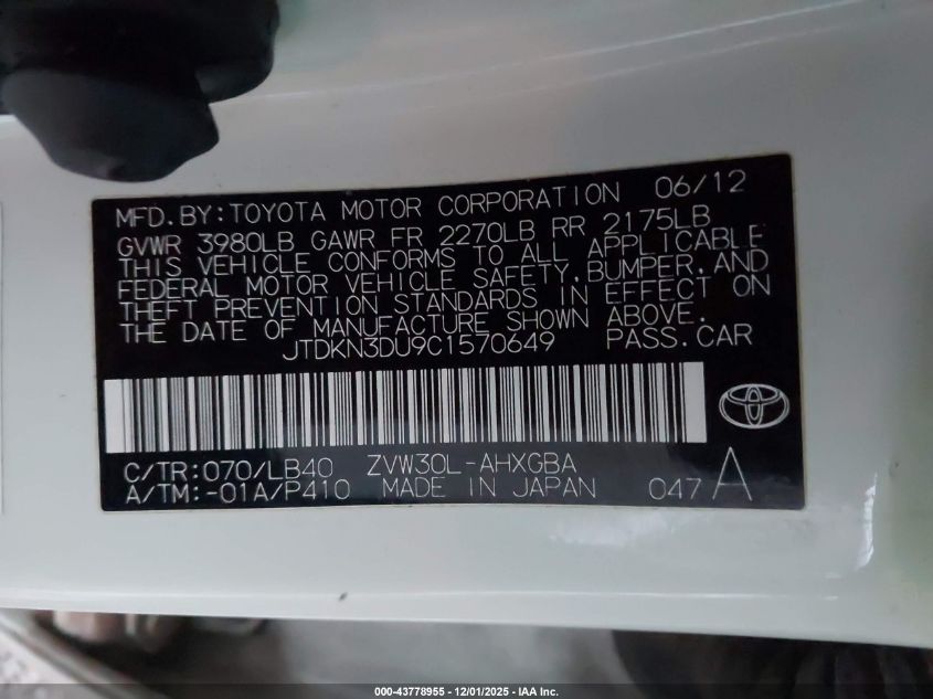 2012 TOYOTA PRIUS 2012 року Гибрид, 1.8, Передний привод, vin - JTDKN3DU9C1570649 из США