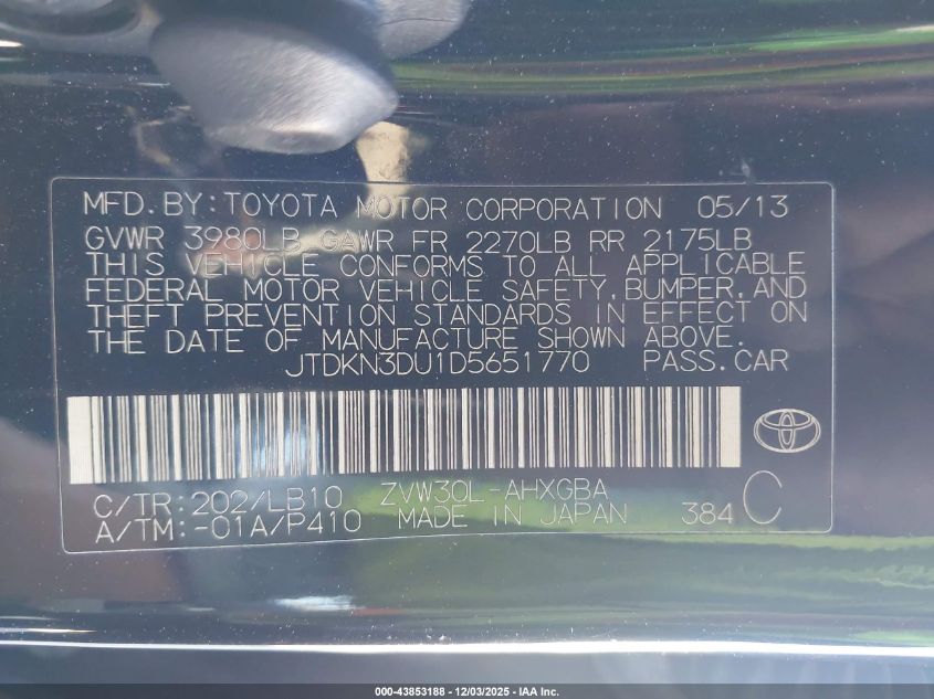 2013 TOYOTA PRIUS 2013 року Гибрид, 1.8, Передний привод, vin - JTDKN3DU1D5651770 из США