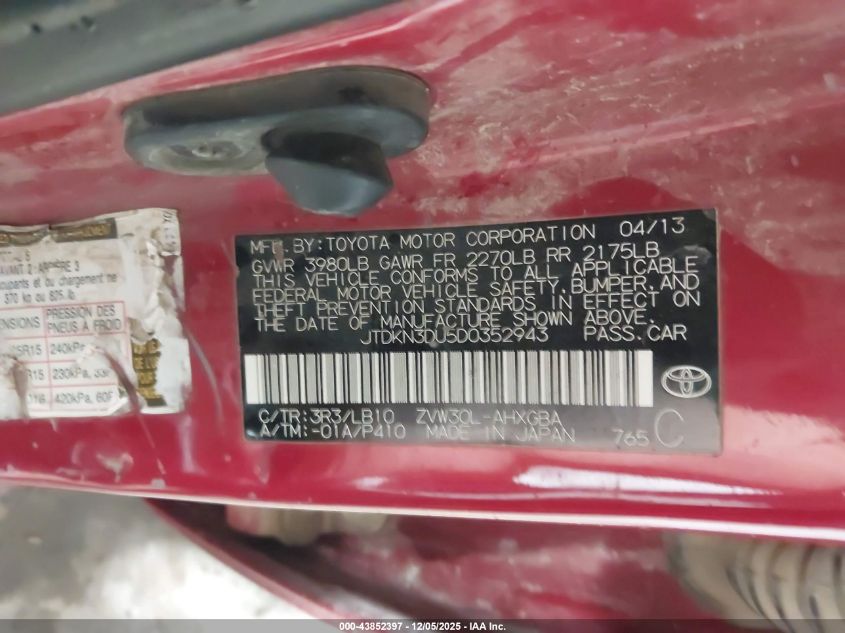 Цвет КрасныйЦилиндры 4Привод Передний приводVIN JTDKN3DU5D0352943Состояние СтационарноПовреждения Передняя или задняя AutoRIA