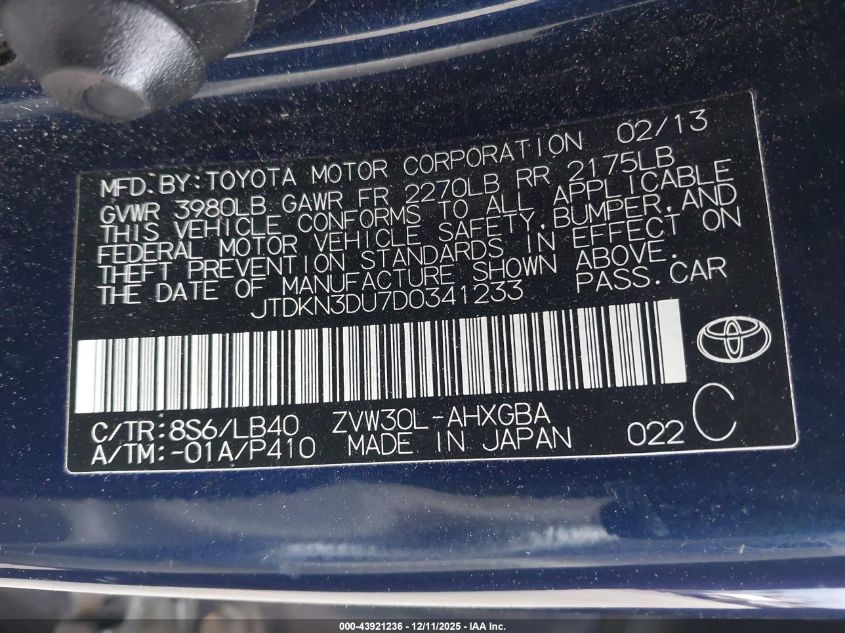 Цвет СинийЦилиндры 4Привод Передний приводVIN JTDKN3DU7D0341233Состояние НеизвестноПовреждения Обычный износ AutoRIA