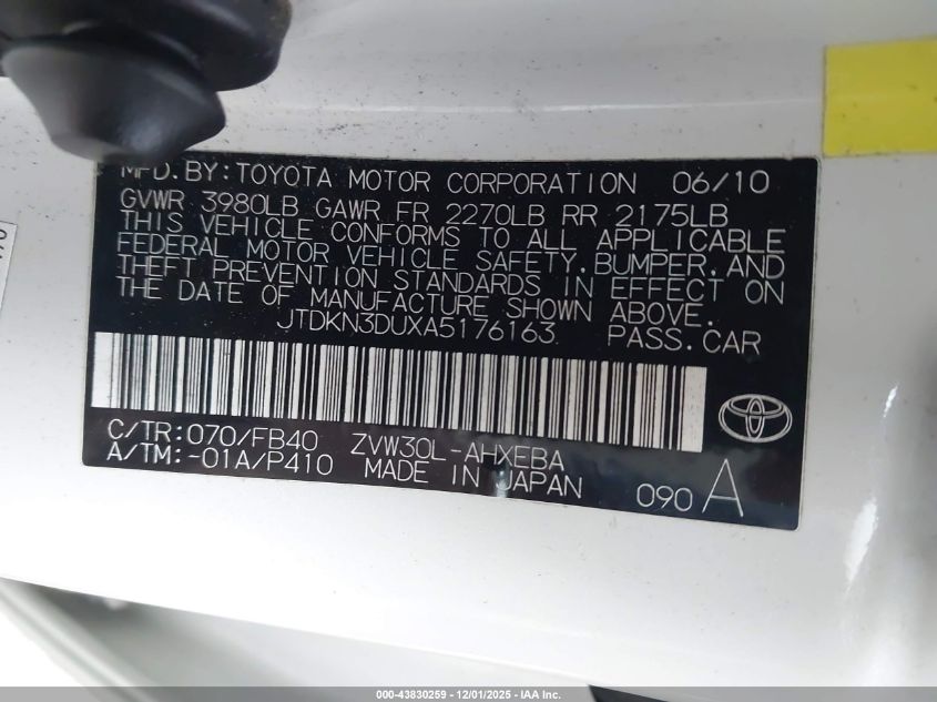 2010 TOYOTA PRIUS 2010 року Гибрид, 1.8, Передний привод, vin - JTDKN3DUXA5176163 из США