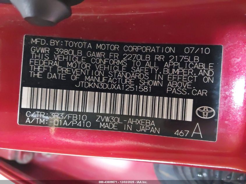 Цвет КрасныйЦилиндры 4Привод Передний приводVIN JTDKN3DUXA1251581Состояние Заводится и едет (проверено)Повреждения Передняя левая AutoRIA