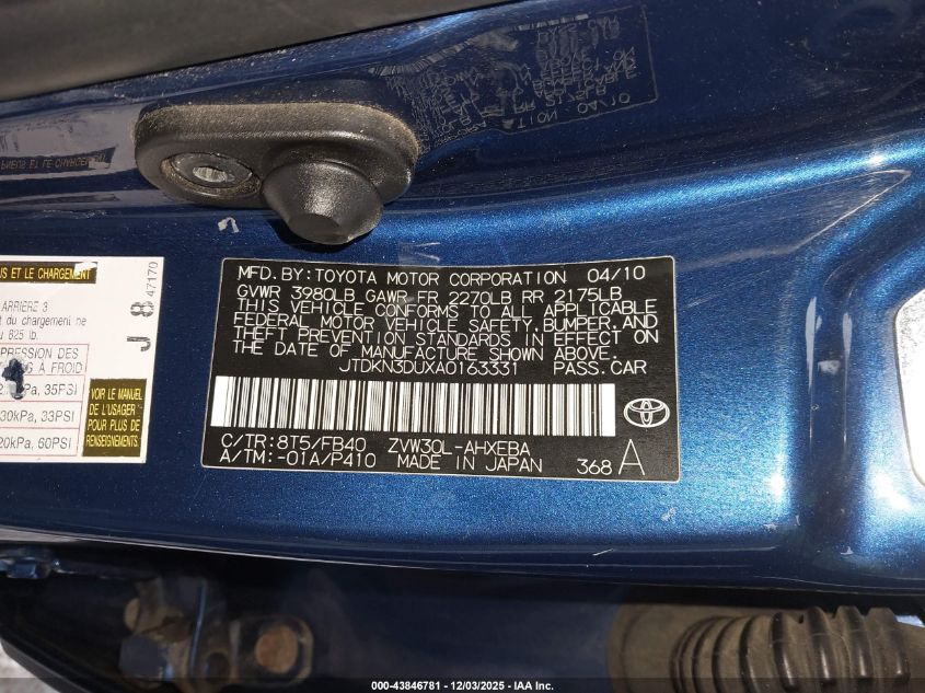 Цвет СинийЦилиндры 4Привод Передний приводVIN JTDKN3DUXA0163331Состояние Заводится и едет (проверено)Повреждения Обычный износДата аукциона 2025-12-17 AutoRIA
