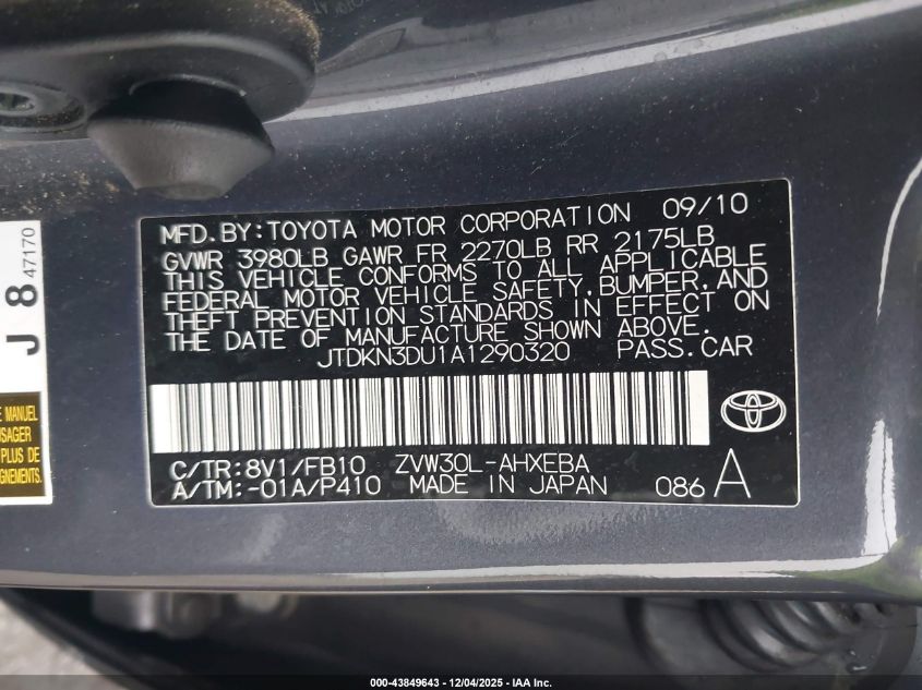 2010 TOYOTA PRIUS 2010 року Гибрид, 1.8, Передний привод, vin - JTDKN3DU1A1290320 из США