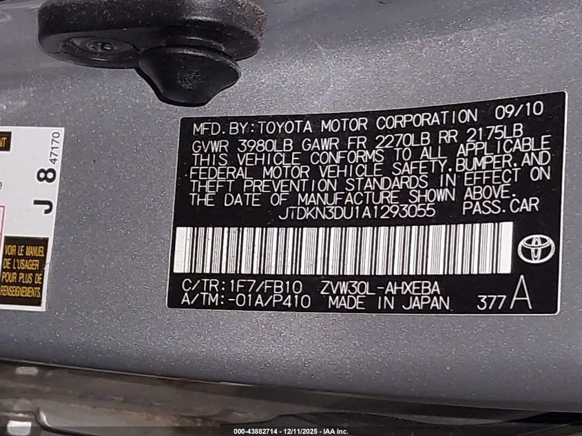 2010 TOYOTA PRIUS 2010 року Гибрид, 1.8, Передний привод, vin - JTDKN3DU1A1293055 из США