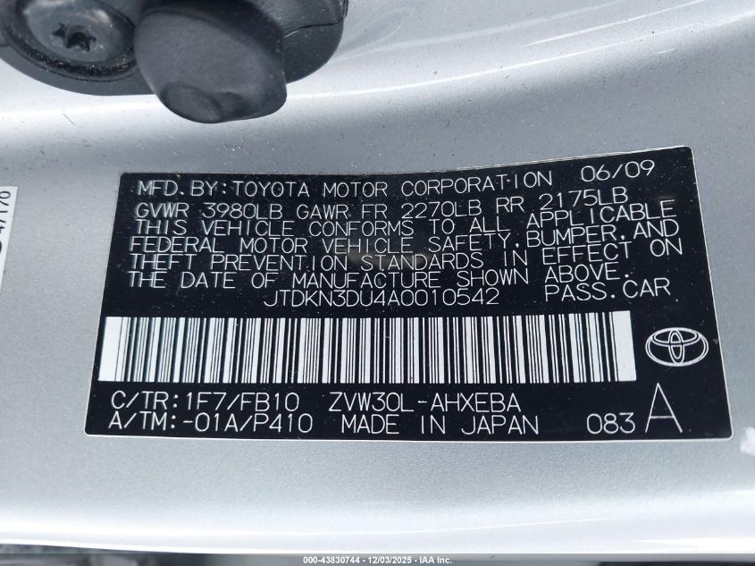 2010 TOYOTA PRIUS 2010 року Гибрид, 1.8, Передний привод, vin - JTDKN3DU4A0010542 из США