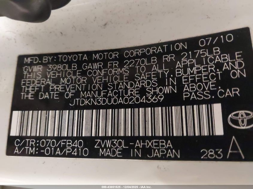 Цвет БелыйЦилиндры 4Привод Передний приводVIN JTDKN3DU0A0204369Состояние СтационарноПовреждения Передняя и задняя AutoRIA