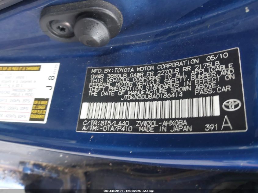 Цвет СинийЦилиндры 4Привод Передний приводVIN JTDKN3DU8A0186414Состояние СтационарноПовреждения Передняя или задняя AutoRIA