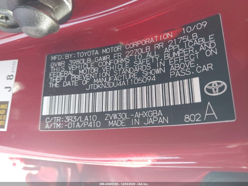 Цвет КрасныйЦилиндры 4Привод Передний приводVIN JTDKN3DU4A1105094Состояние Заводится и едет (проверено)Повреждения Передняя правая AutoRIA