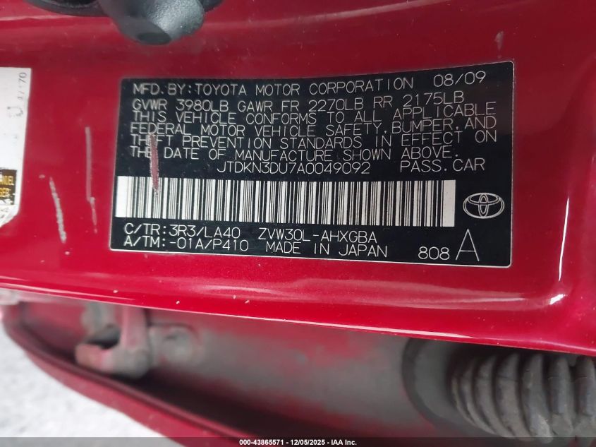 Цвет КрасныйЦилиндры 4Привод Передний приводVIN JTDKN3DU7A0049092Состояние Заводится и едет (проверено)Повреждения Передняя или задняя AutoRIA