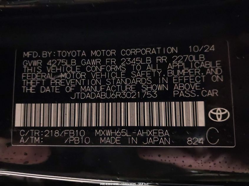 2024 TOYOTA PRIUS 2024 року Гибрид, 2.0, Полный привод, vin - JTDADABU6R3021753 из США