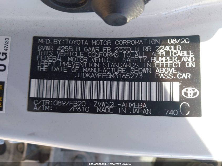 2021 TOYOTA PRIUS PRIME 2021 року Гибрид, 1.8, Передний привод, vin - JTDKAMFP5M3165273 из США