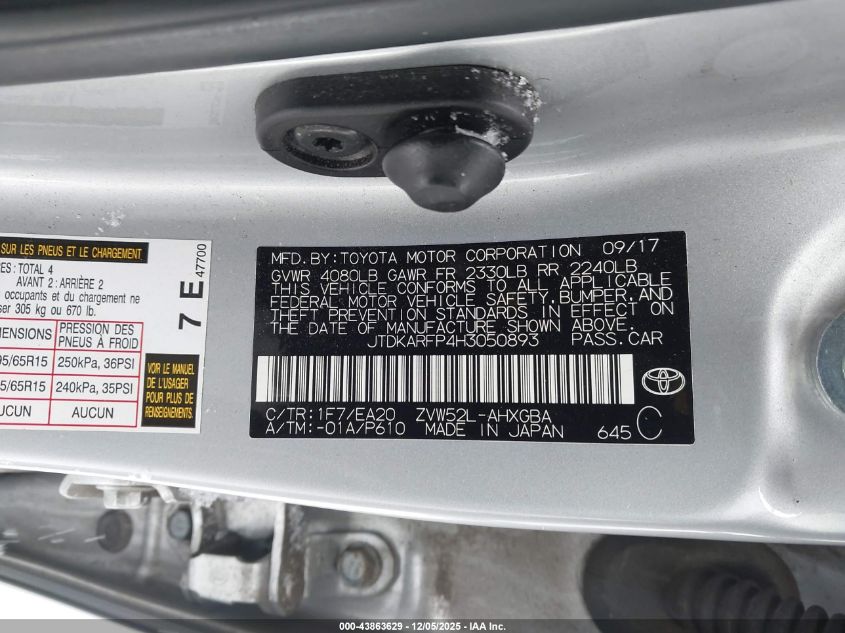 2017 TOYOTA PRIUS PRIME PRIUS PRIM