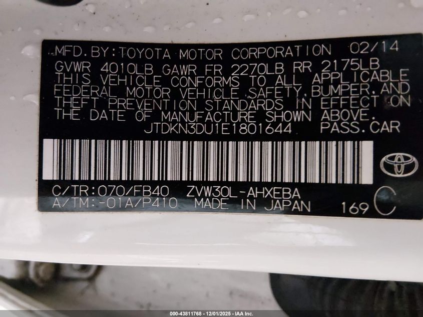 2014 TOYOTA PRIUS 2014 року Гибрид, 1.8, Передний привод, vin - JTDKN3DU1E1801644 из США