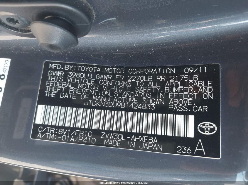 Цвет СерыйЦилиндры 4Привод Передний приводVIN JTDKN3DU9B1424833Состояние Заводится и едет (проверено)Повреждения Задняя AutoRIA