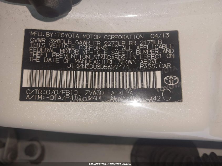 Цвет БелыйЦилиндры 4Привод Передний приводVIN JTDKN3DU8D5629474Состояние Заводится и едет (проверено)Повреждения Левая сторона AutoRIA