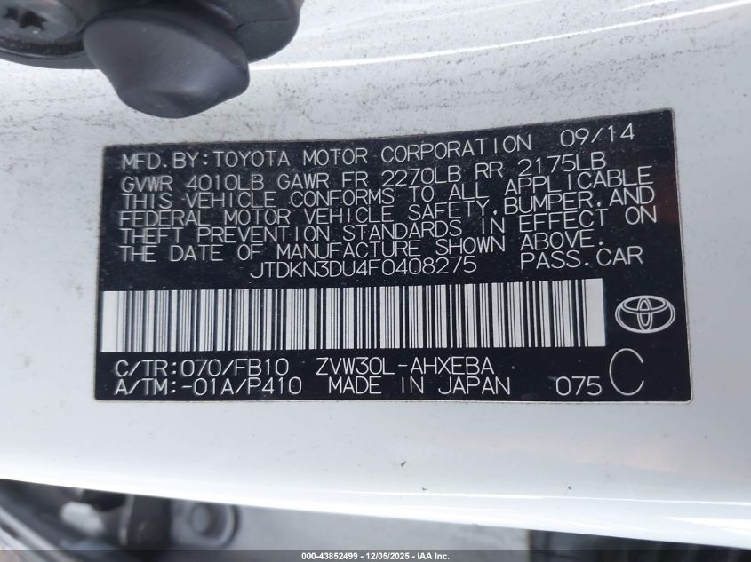 Цвет БелыйЦилиндры 4Привод Передний приводVIN JTDKN3DU4F0408275Состояние Заводится и едет (проверено)Повреждения Задняя AutoRIA