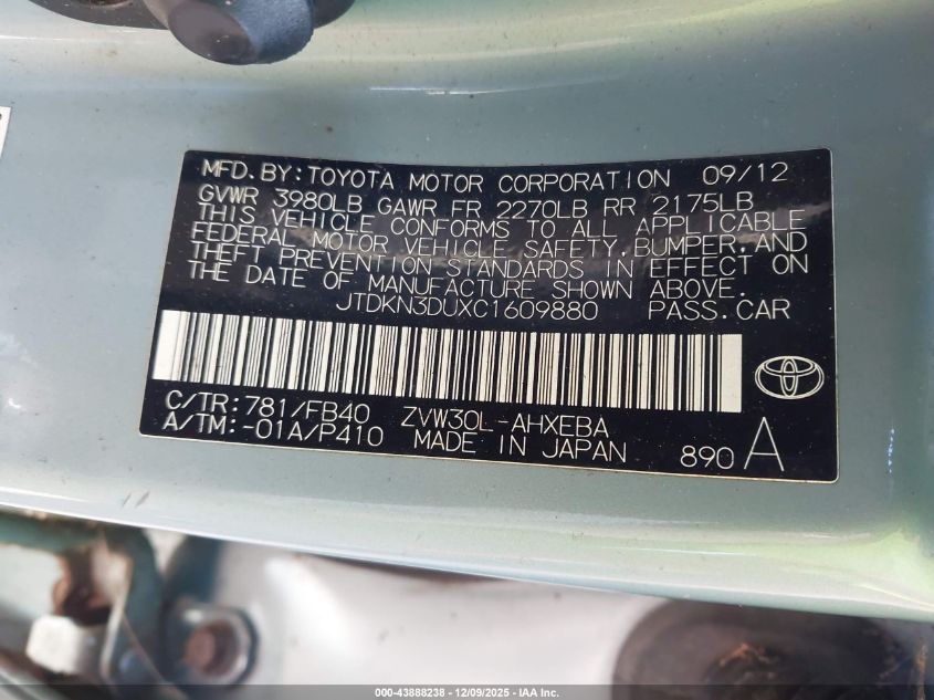 2012 TOYOTA PRIUS 2012 року Гибрид, 1.8, Передний привод, vin - JTDKN3DUXC1609880 из США