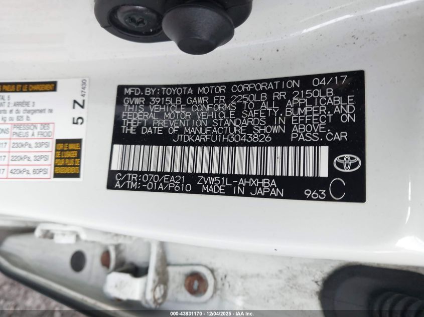 Цвет БелыйЦилиндры 4Привод Передний приводVIN JTDKARFU1H3043826Состояние ЗаводитсяПовреждения Передняя или задняя AutoRIA