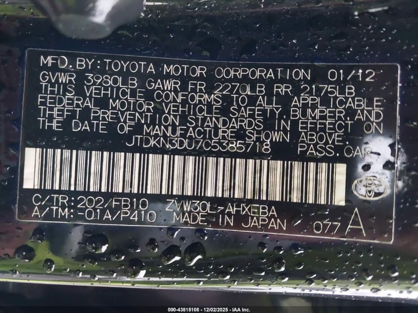 Цвет ЧерныйЦилиндры 4Привод Передний приводVIN JTDKN3DU7C5385718Состояние Заводится и едет (проверено)Повреждения Передняя или задняя AutoRIA