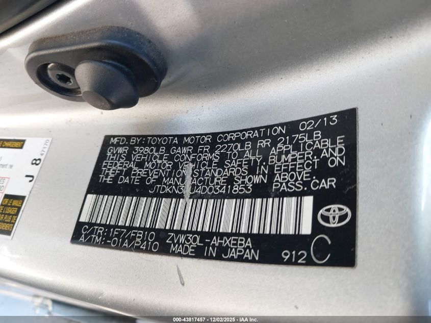 2013 TOYOTA PRIUS 2013 року Гибрид, 1.8, Передний привод, vin - JTDKN3DU4D0341853 из США