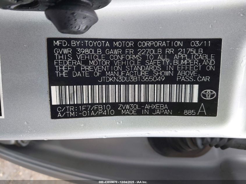 Цвет СерыйЦилиндры 4Привод Передний приводVIN JTDKN3DU3B1365049Состояние Заводится и едет (проверено)Повреждения Передняя или задняя AutoRIA