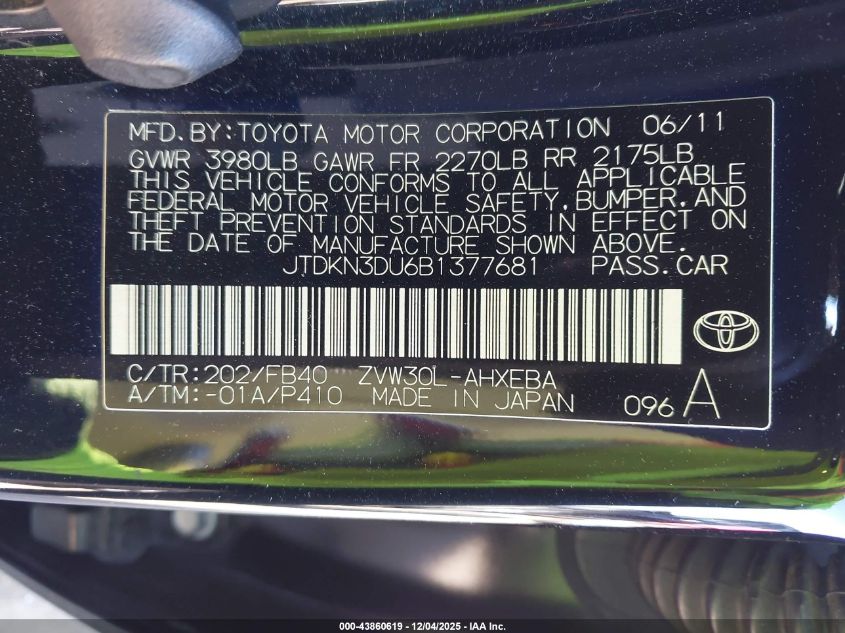 2011 TOYOTA PRIUS 2011 року Гибрид, 1.8, Передний привод, vin - JTDKN3DU6B1377681 из США