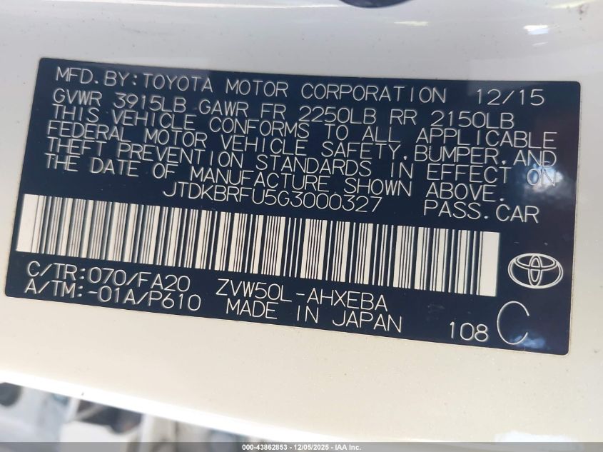 2016 TOYOTA PRIUS 2016 року Гибрид, 1.8, Передний привод, vin - JTDKBRFU5G3000327 из США