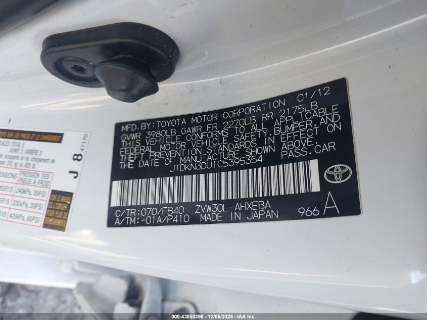 Цвет БелыйЦилиндры 4Привод Передний приводVIN JTDKN3DU1C5395354Состояние СтационарноПовреждения Задняя AutoRIA