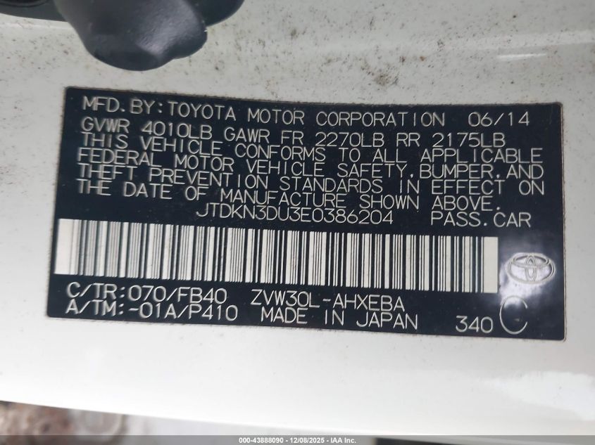 Цвет БелыйЦилиндры 4Привод Передний приводVIN JTDKN3DU3E0386204Состояние Заводится и едет (проверено)Повреждения Передняя или задняяДата аукциона 2025-12-17 AutoRIA