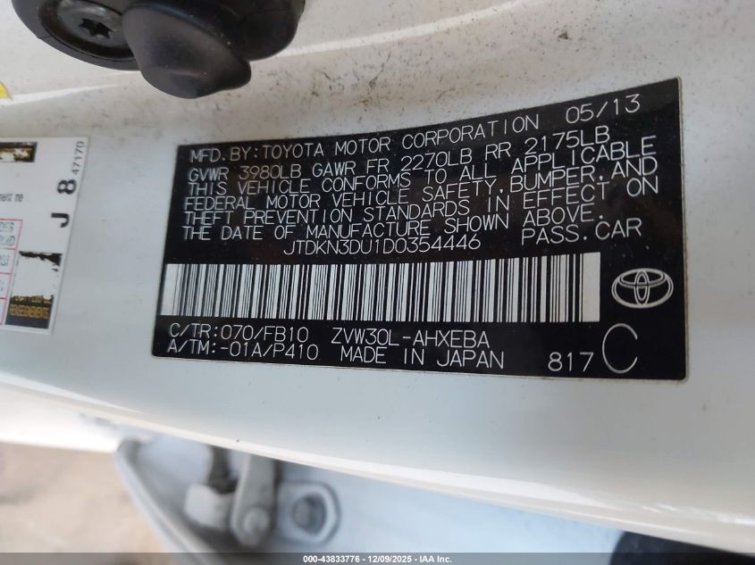 Цвет БелыйЦилиндры 4Привод Передний приводVIN JTDKN3DU1D0354446Состояние СтационарноПовреждения Передняя или задняя AutoRIA