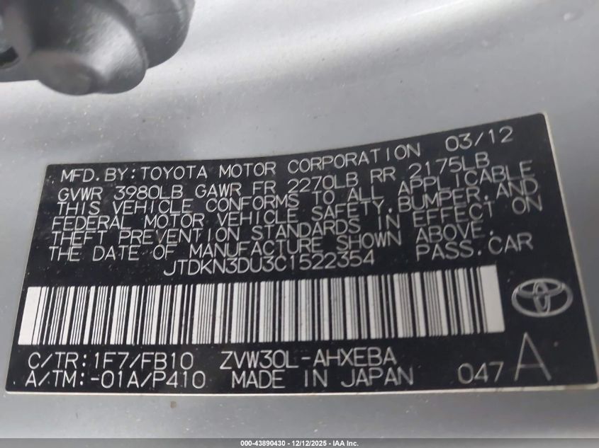 Цвет СеребряныйЦилиндры 4Привод Передний приводVIN JTDKN3DU3C1522354Состояние Заводится и едет (проверено)Повреждения Правая сторона AutoRIA
