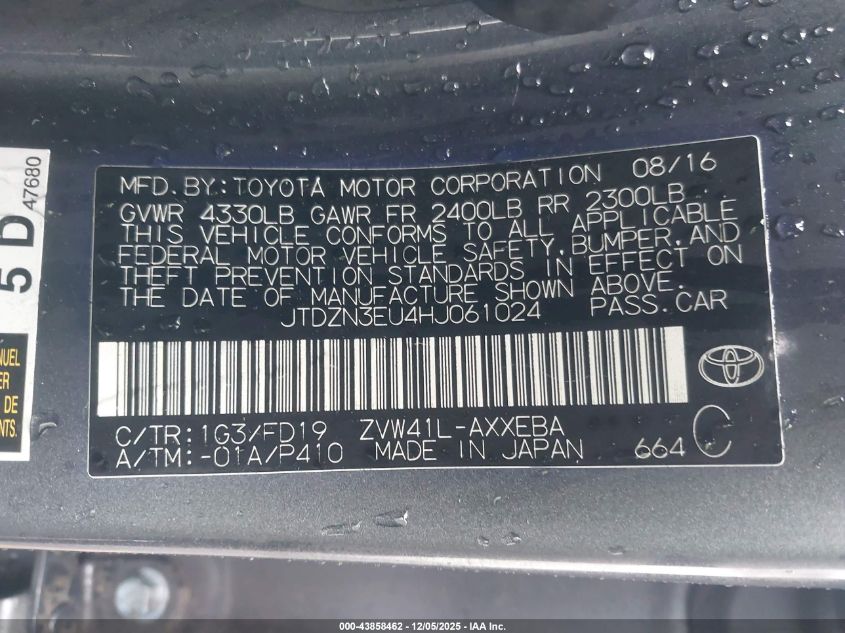 Цвет СерыйЦилиндры 4Привод Передний приводVIN JTDZN3EU4HJ061024Состояние СтационарноПовреждения Передняя или задняя AutoRIA
