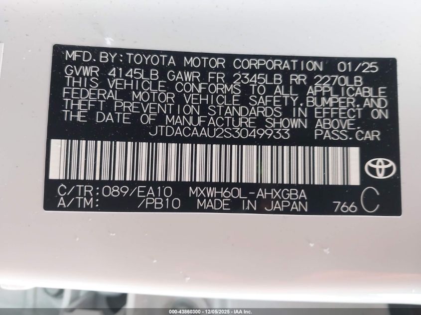 2025 TOYOTA PRIUS 2025 року Гибрид, 2.0, Передний привод, vin - JTDACAAU2S3049933 из США