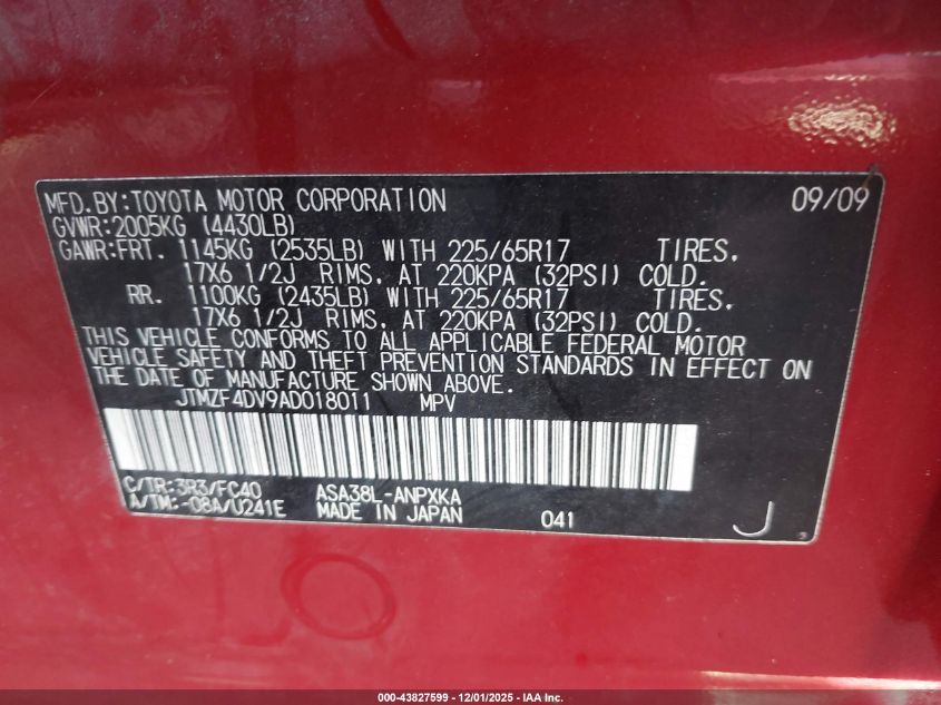 Цвет КрасныйЦилиндры 4Привод Передний приводVIN JTMZF4DV9AD018011Состояние Заводится и едет (проверено)Повреждения Задняя AutoRIA