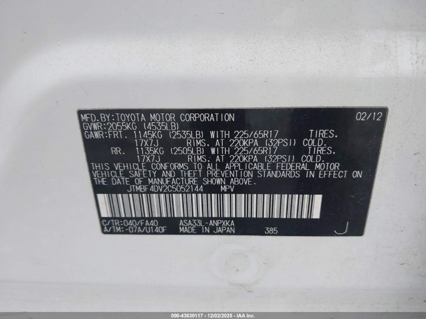 Цвет БелыйЦилиндры 4Привод Полный приводVIN JTMBF4DV2C5052144Состояние СтационарноПовреждения Пожар двигателя AutoRIA