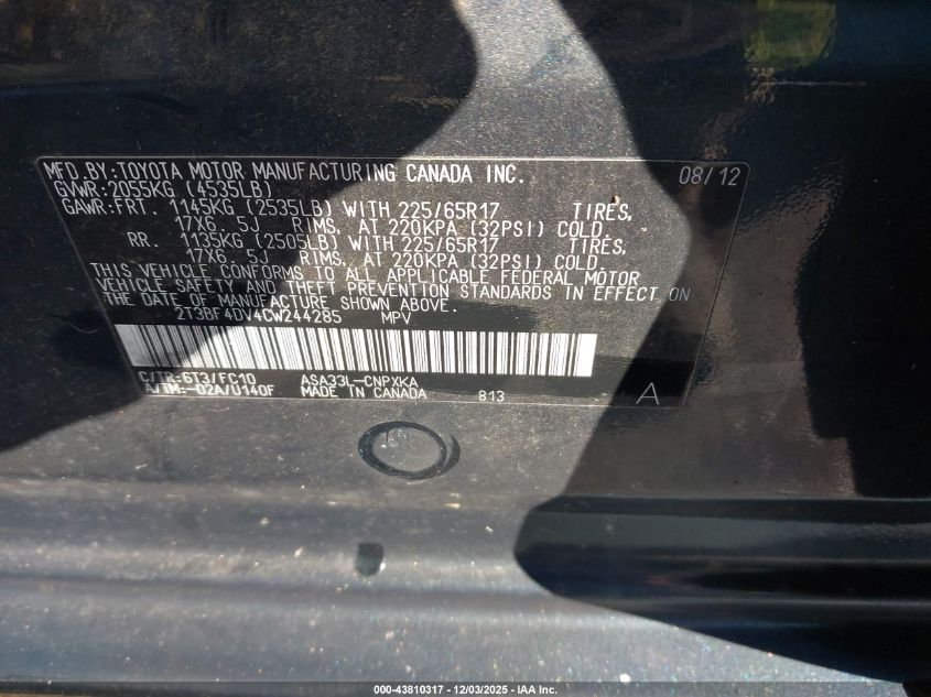 2012 TOYOTA RAV4 2012 року Бензин, 2.5, Полный привод, vin - 2T3BF4DV4CW244285 из США