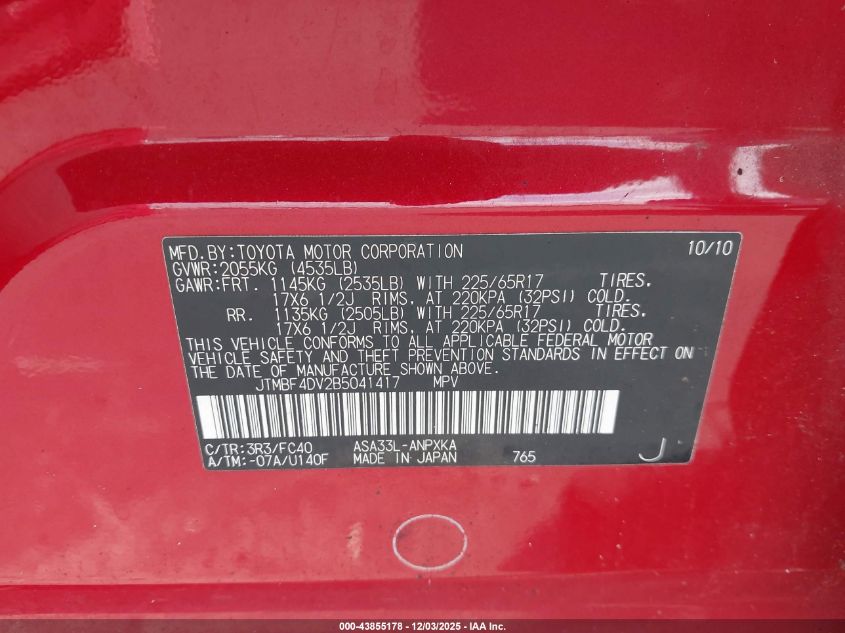 2011 TOYOTA RAV4 2011 року Бензин, 2.5, Полный привод, vin - JTMBF4DV2B5041417 из США