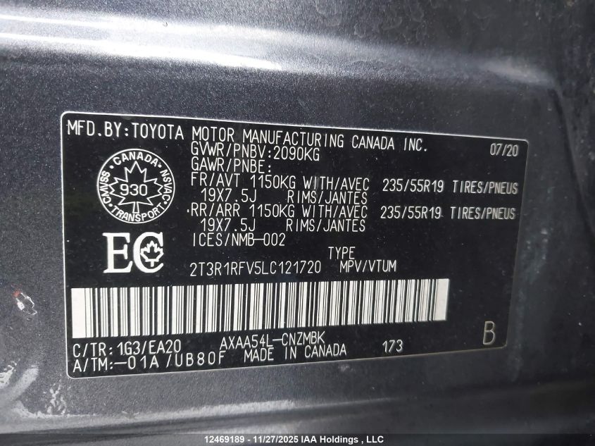 2020 TOYOTA RAV4 2020 року Бензин, , Полный привод, vin - 2T3R1RFV5LC121720 из США