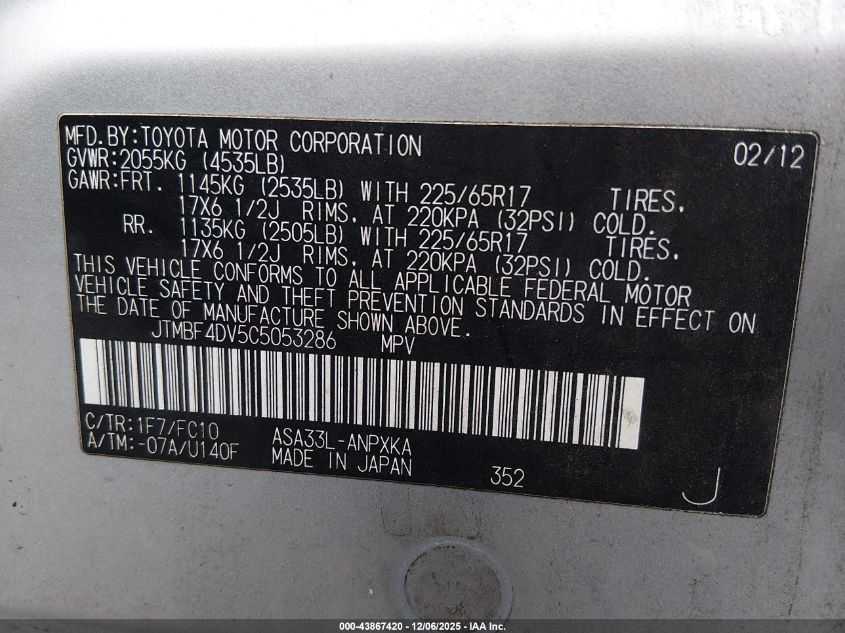 Цвет СеребряныйЦилиндры 4Привод Полный приводVIN JTMBF4DV5C5053286Состояние Заводится и едет (проверено)Повреждения Передняя или задняя AutoRIA