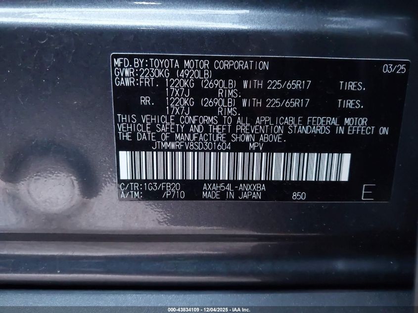 2025 TOYOTA RAV4 HYBRID 2025 року Гибрид, 2.5, Полный привод, vin - JTMMWRFV8SD301604 из США